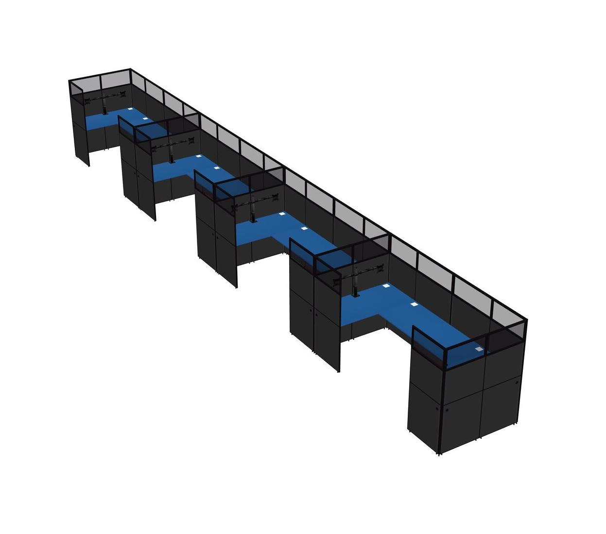 Prism Blue U-shaped Panel System For 4 Person + Monitor Arm (double Arms) For 4 User(s)
