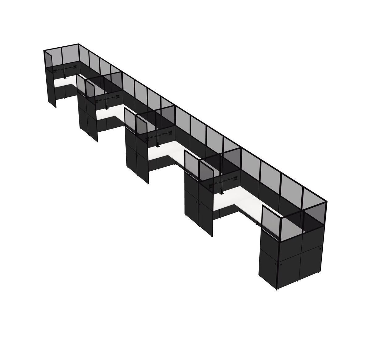 White U-shaped Panel System For 4 Person + Monitor Arm (double Arms) For 4 User(s)