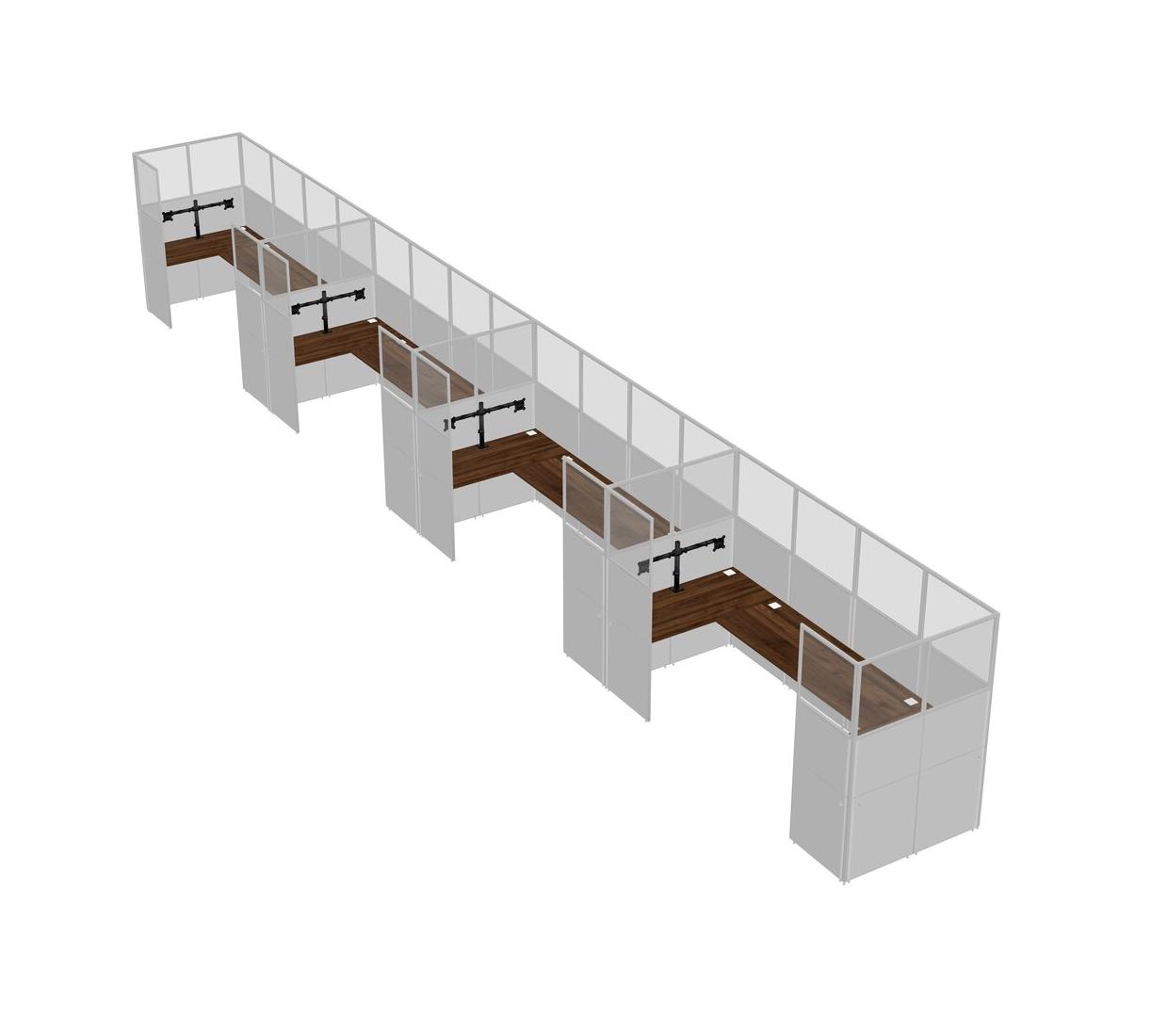 Columbia Walnut U-shaped Panel System For 4 Person + Monitor Arm (double Arms) For 4 User(s)