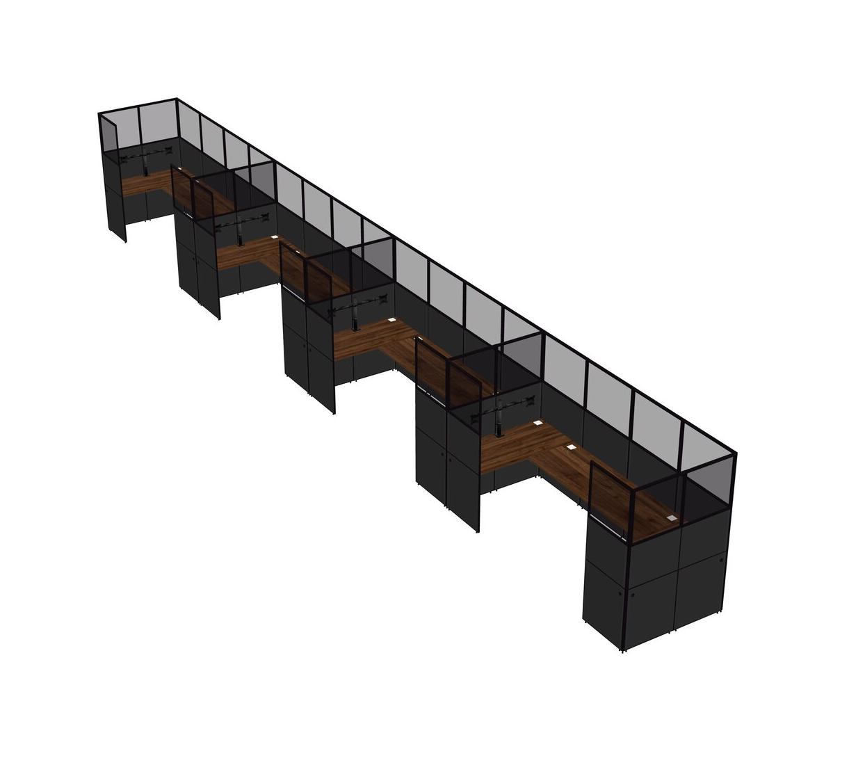Columbia Walnut U-shaped Panel System For 4 Person + Monitor Arm (double Arms) For 4 User(s)
