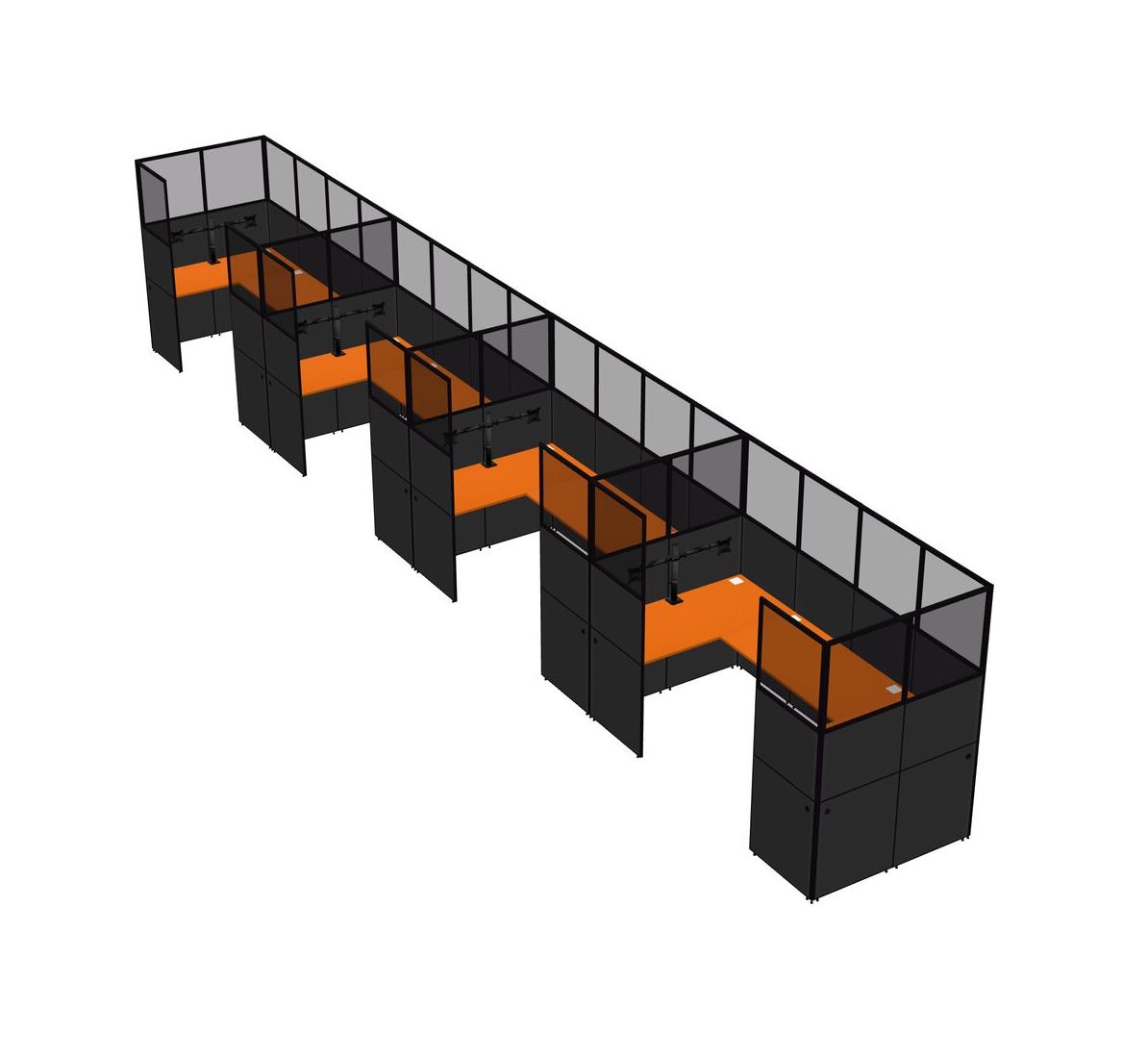 Orange U-shaped Panel System For 4 Person + Monitor Arm (double Arms) For 4 User(s)
