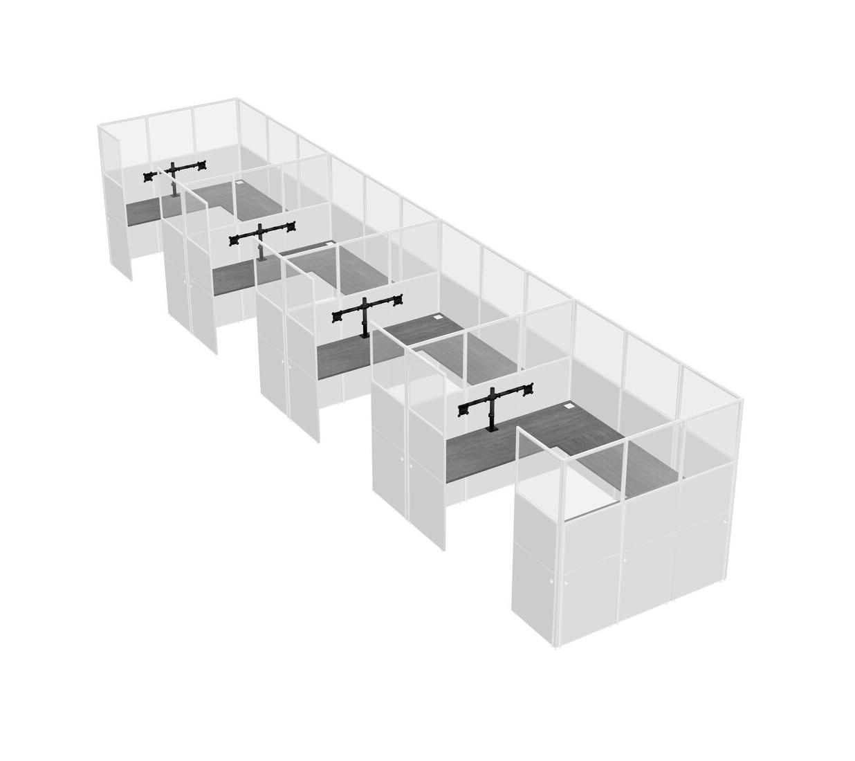 Grey U-shaped Panel System For 4 Person + Monitor Arm (double Arms) For 4 User(s)