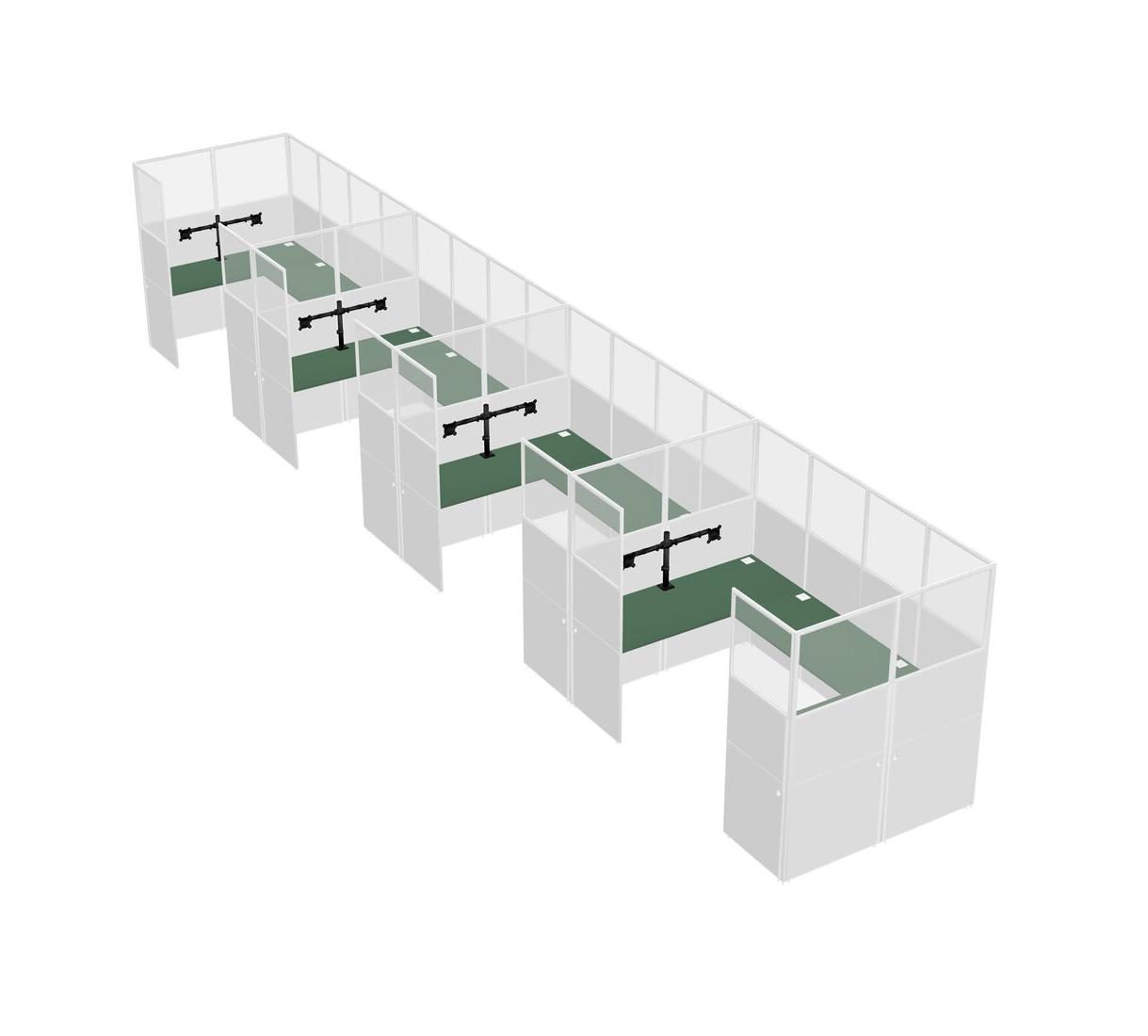 Green U-shaped Panel System For 4 Person + Monitor Arm (double Arms) For 4 User(s)