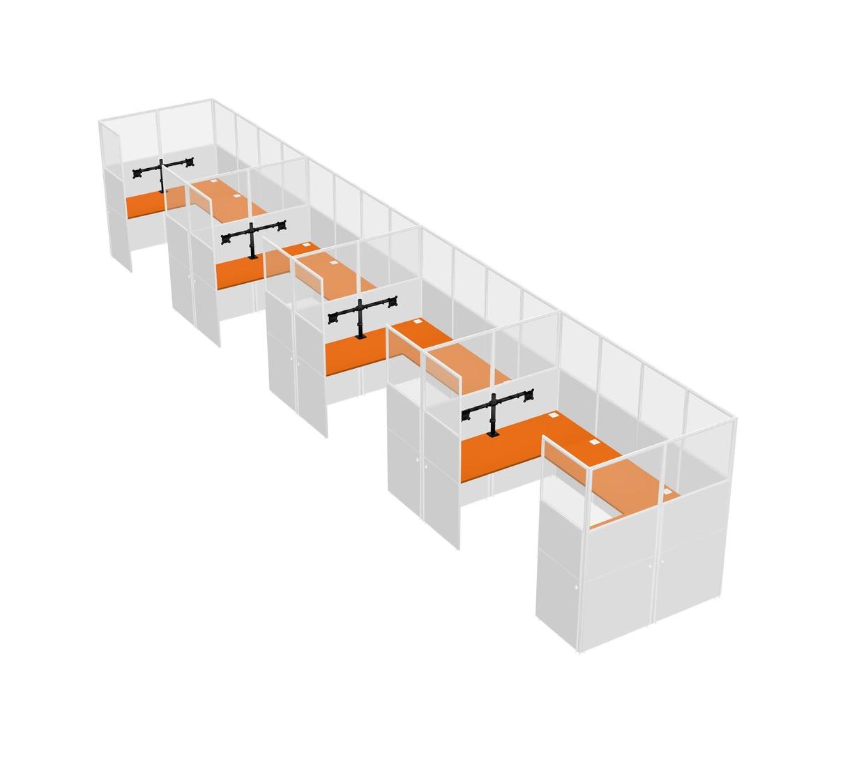 Orange U-shaped Panel System For 4 Person + Monitor Arm (double Arms) For 4 User(s)
