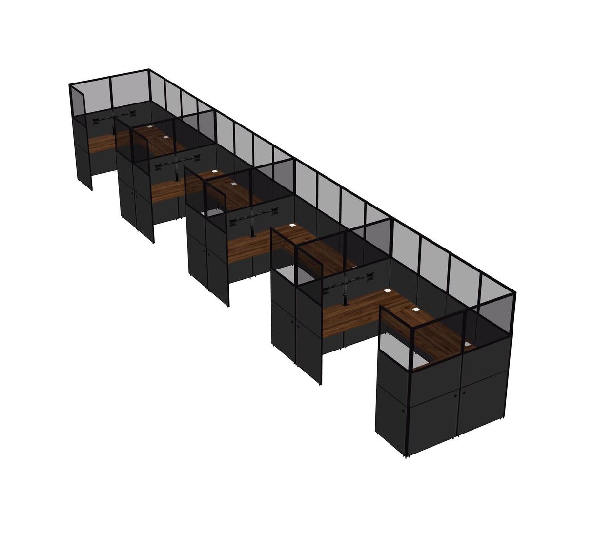 Columbia Walnut U-shaped Panel System For 4 Person + Monitor Arm (double Arms) For 4 User(s)