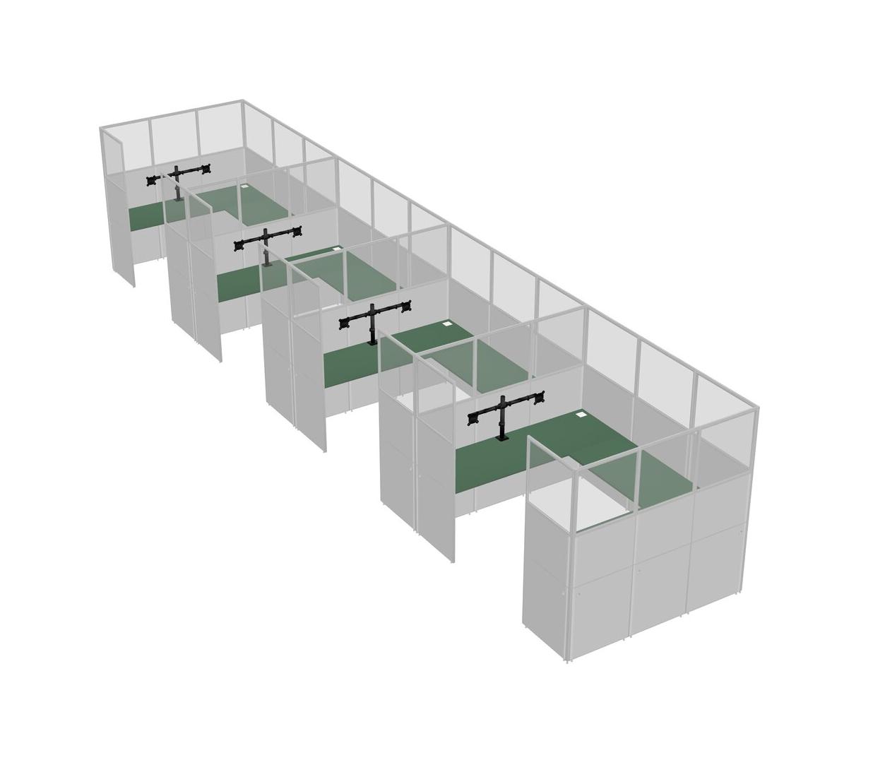 Green U-shaped Panel System For 4 Person + Monitor Arm (double Arms) For 4 User(s)