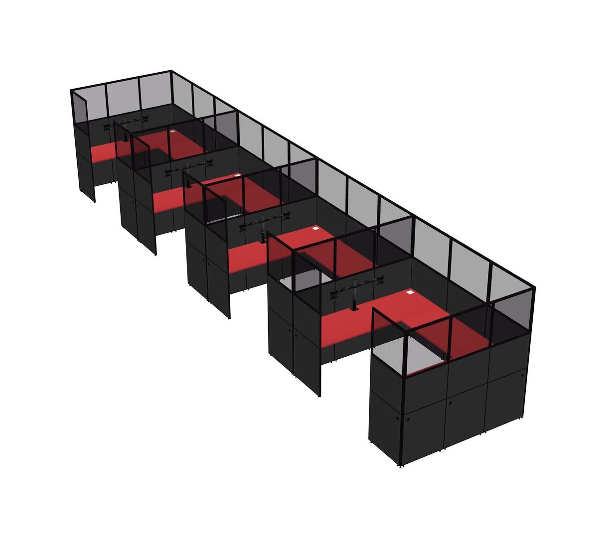 Prism Red U-shaped Panel System For 4 Person + Monitor Arm (double Arms) For 4 User(s)