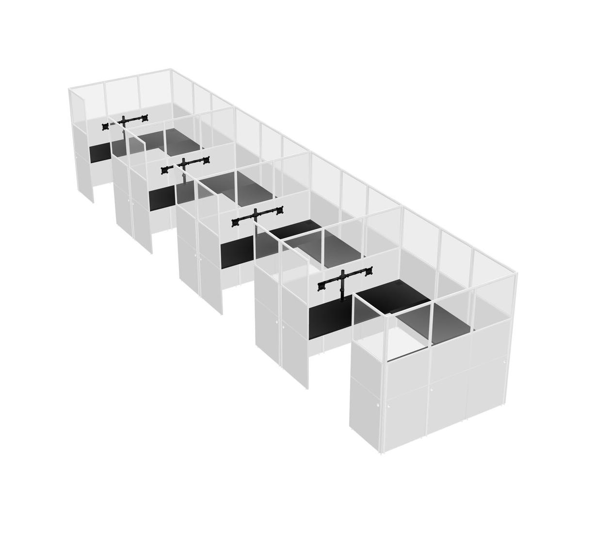 Black U-shaped Panel System For 4 Person + Monitor Arm (double Arms) For 4 User(s)