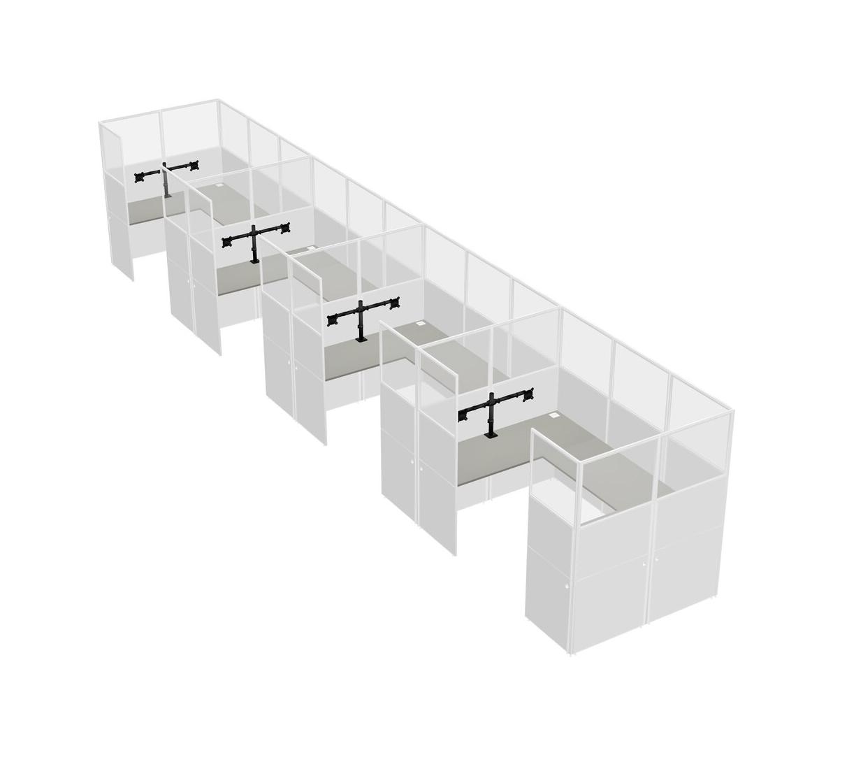 Grey Shadows U-shaped Panel System For 4 Person + Monitor Arm (double Arms) For 4 User(s)