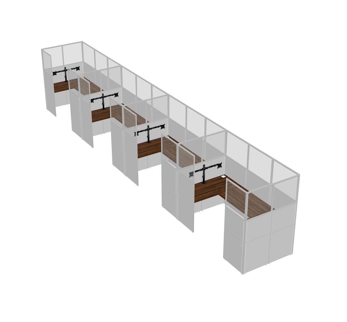 Columbia Walnut U-shaped Panel System For 4 Person + Monitor Arm (double Arms) For 4 User(s)