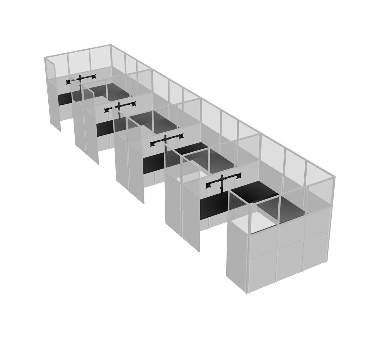 Black U-shaped Panel System For 4 Person + Monitor Arm (double Arms) For 4 User(s)
