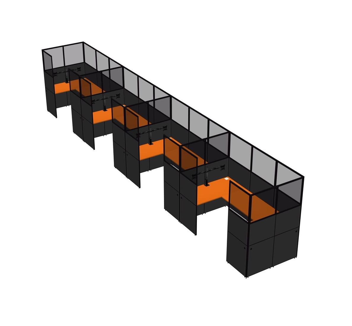 Orange U-shaped Panel System For 4 Person + Monitor Arm (double Arms) For 4 User(s)
