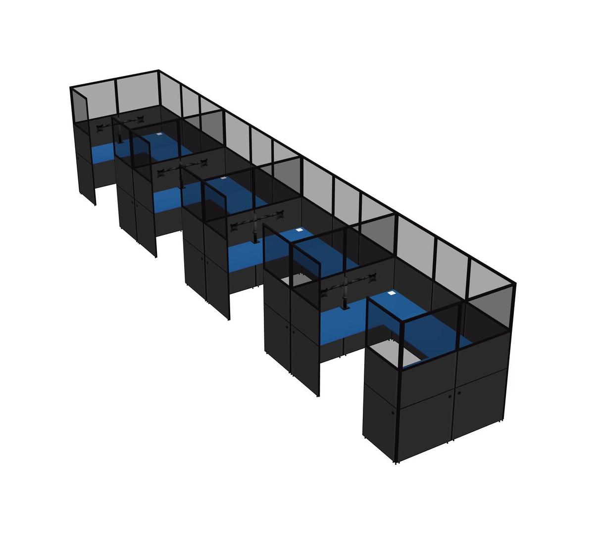 Prism Blue U-shaped Panel System For 4 Person + Monitor Arm (double Arms) For 4 User(s)