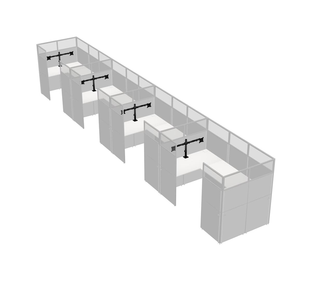 White U-shaped Panel System For 4 Person + Monitor Arm (double Arms) For 4 User(s)