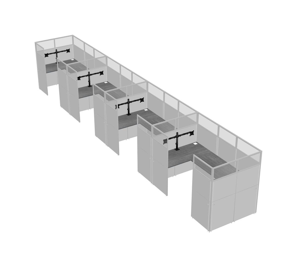 Grey U-shaped Panel System For 4 Person + Monitor Arm (double Arms) For 4 User(s)