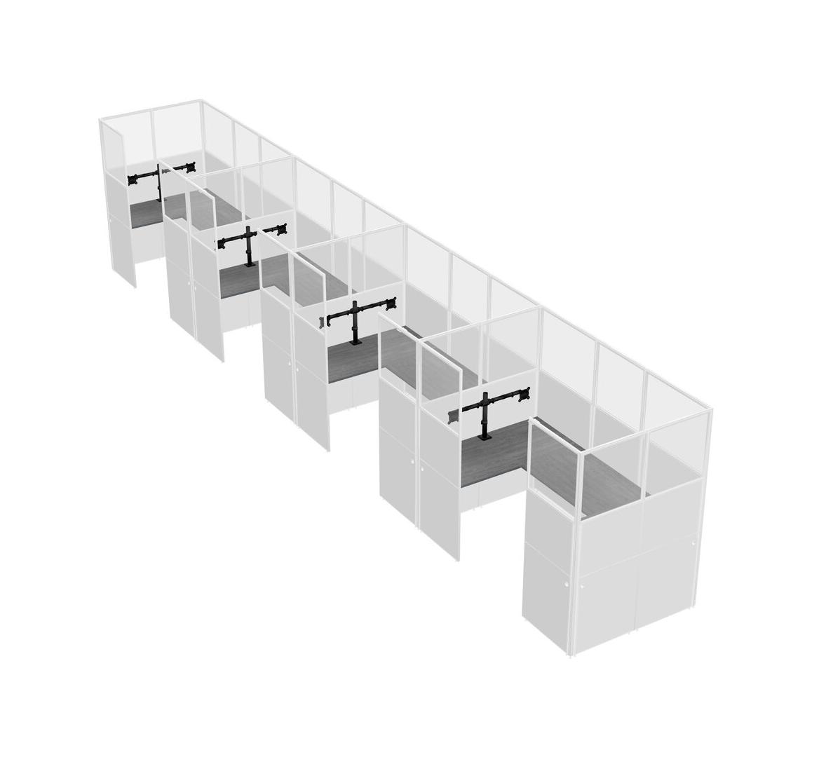 Grey U-shaped Panel System For 4 Person + Monitor Arm (double Arms) For 4 User(s)