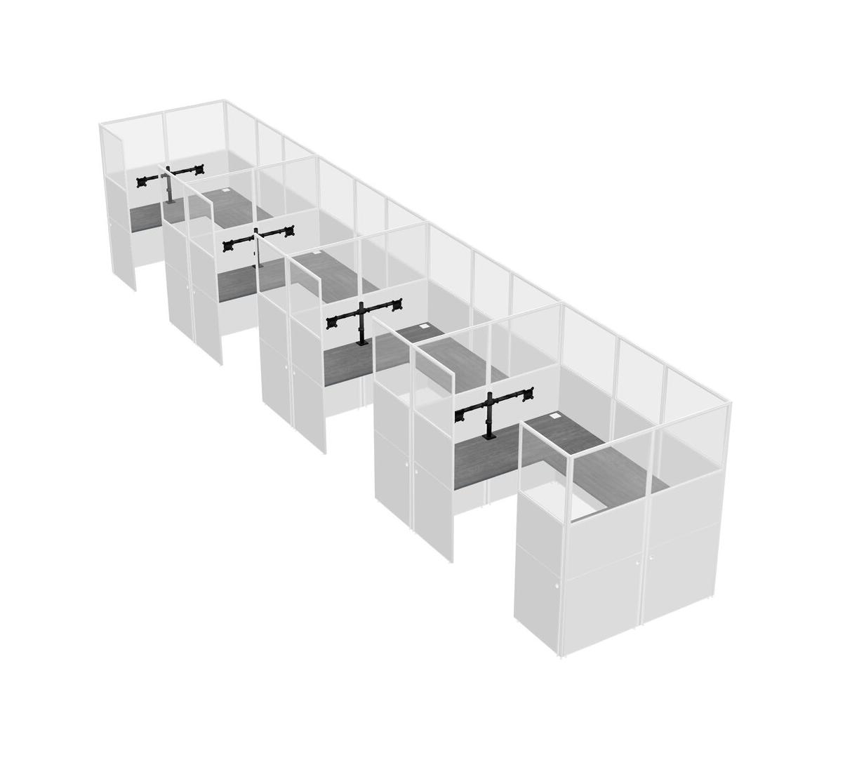 Grey U-shaped Panel System For 4 Person + Monitor Arm (double Arms) For 4 User(s)