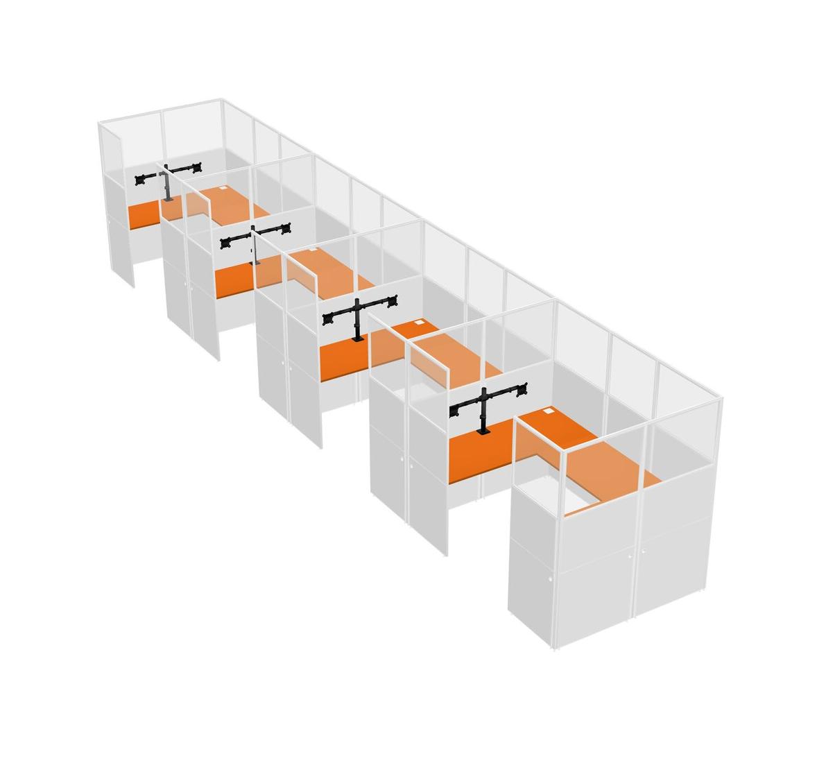 Orange U-shaped Panel System For 4 Person + Monitor Arm (double Arms) For 4 User(s)