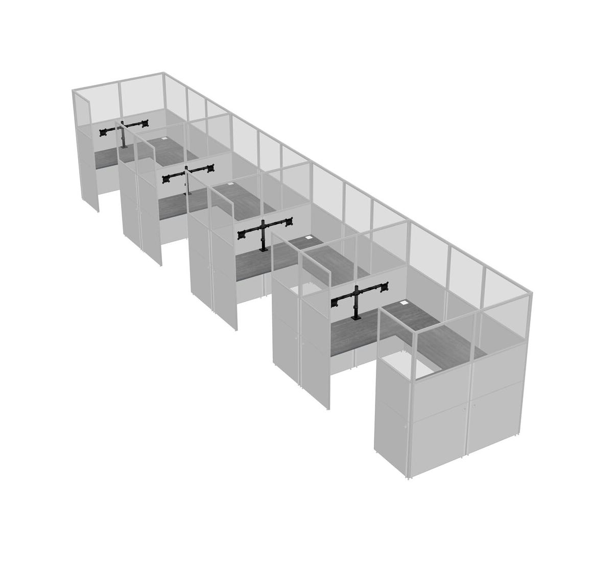 Grey U-shaped Panel System For 4 Person + Monitor Arm (double Arms) For 4 User(s)
