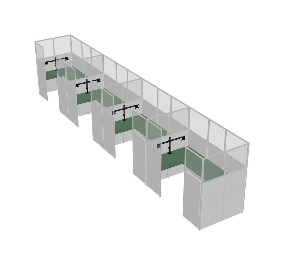 Green U-shaped Panel System For 4 Person + Monitor Arm (double Arms) For 4 User(s)