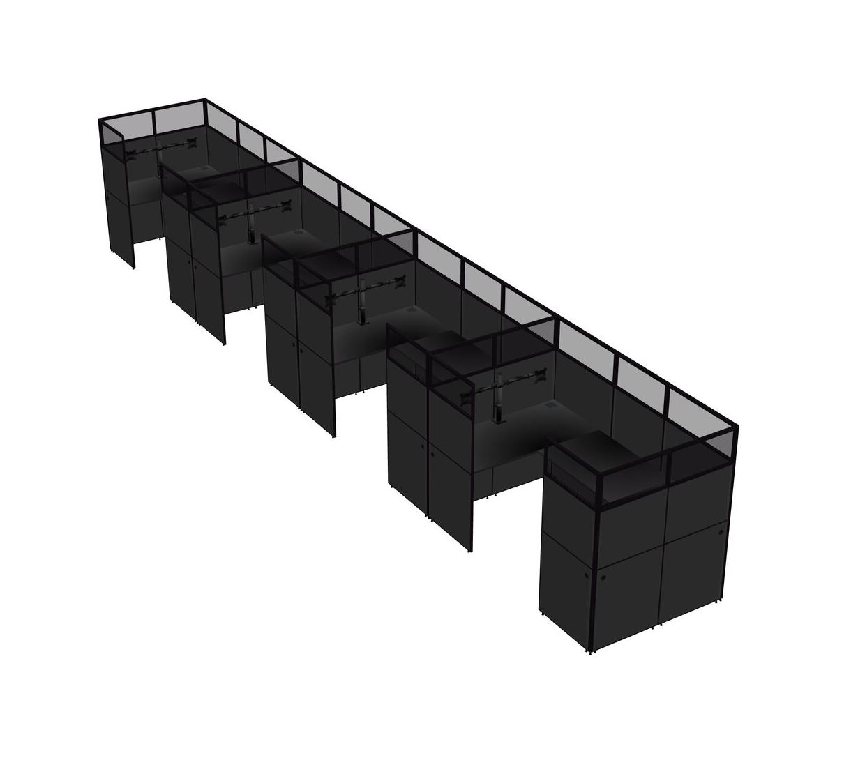 Black U-shaped Panel System For 4 Person + Monitor Arm (double Arms) For 4 User(s)