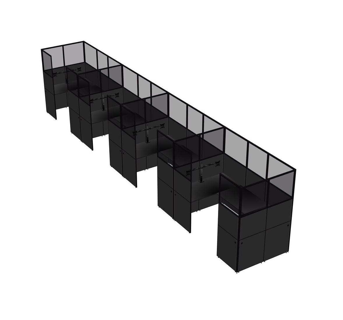 Black U-shaped Panel System For 4 Person + Monitor Arm (double Arms) For 4 User(s)