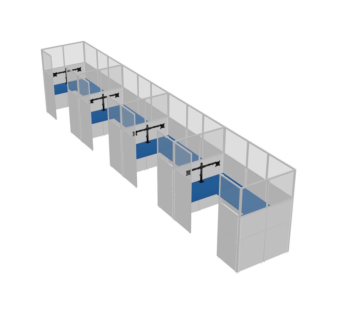 Prism Blue U-shaped Panel System For 4 Person + Monitor Arm (double Arms) For 4 User(s)