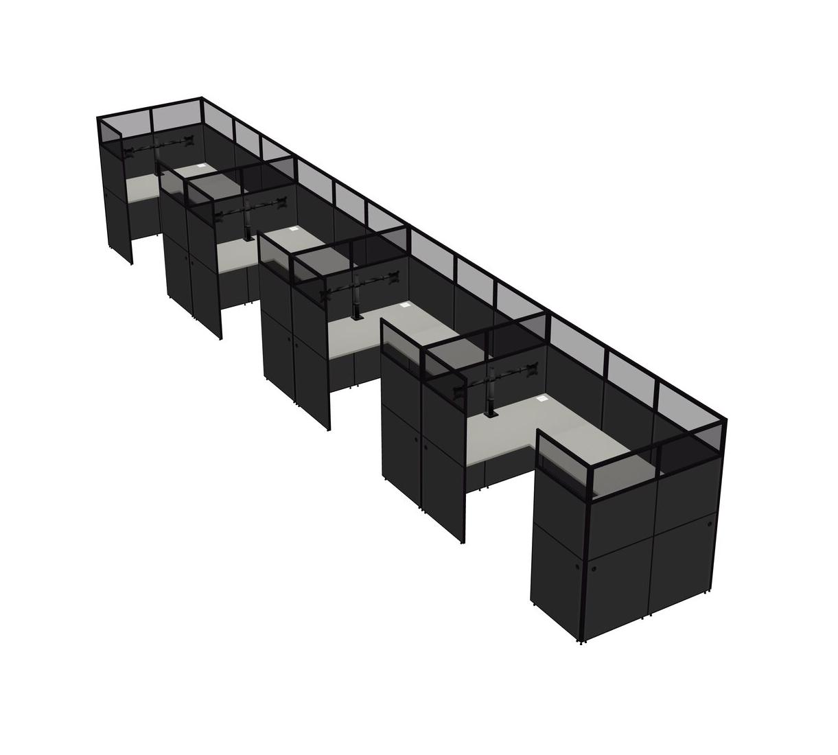 Grey Shadows U-shaped Panel System For 4 Person + Monitor Arm (double Arms) For 4 User(s)