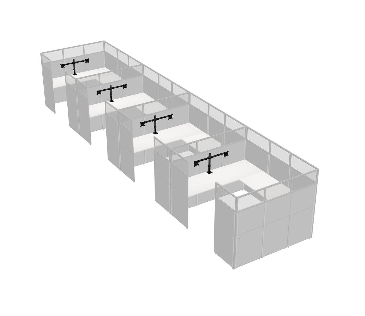 White U-shaped Panel System For 4 Person + Monitor Arm (double Arms) For 4 User(s)