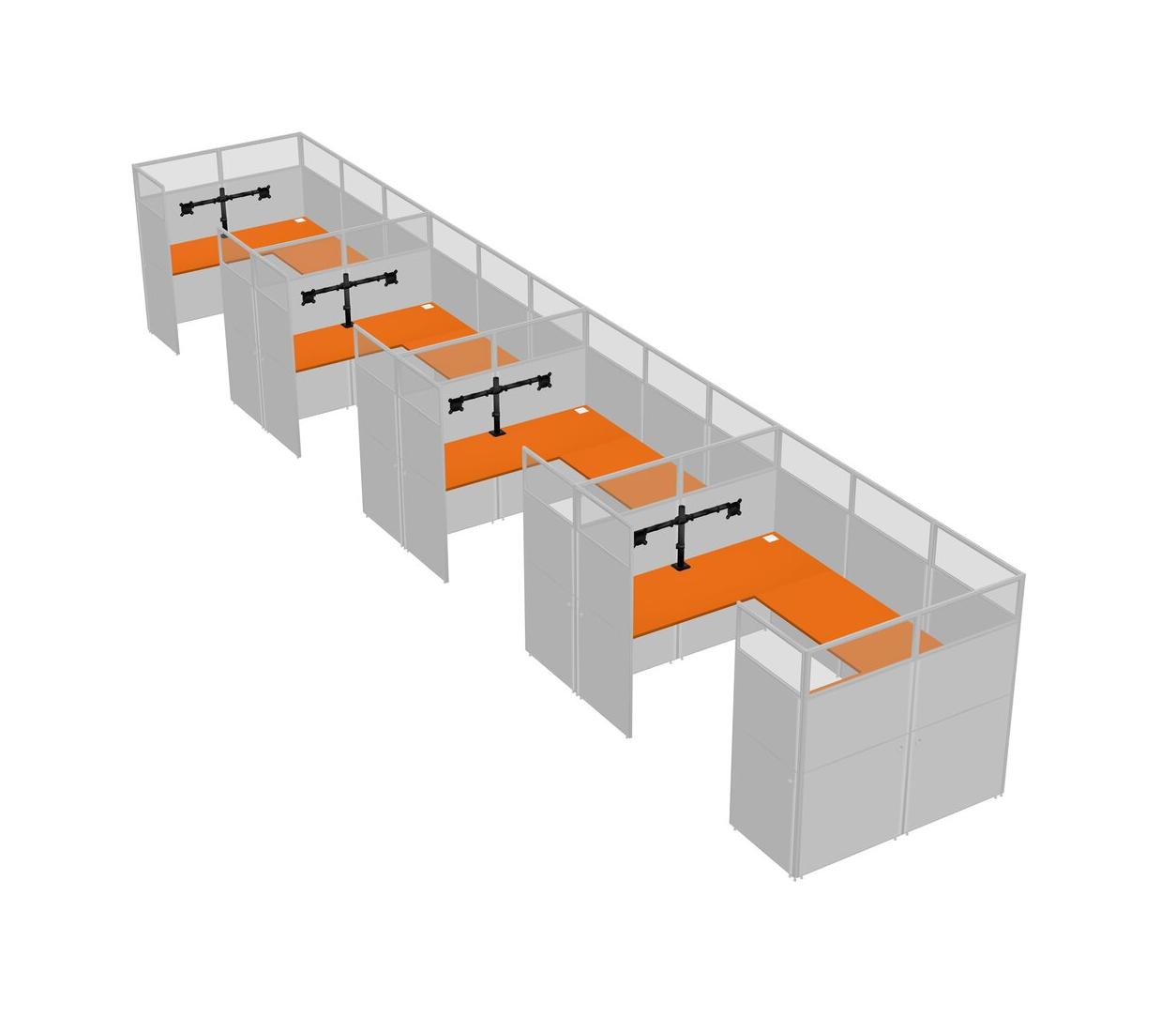 Orange U-shaped Panel System For 4 Person + Monitor Arm (double Arms) For 4 User(s)