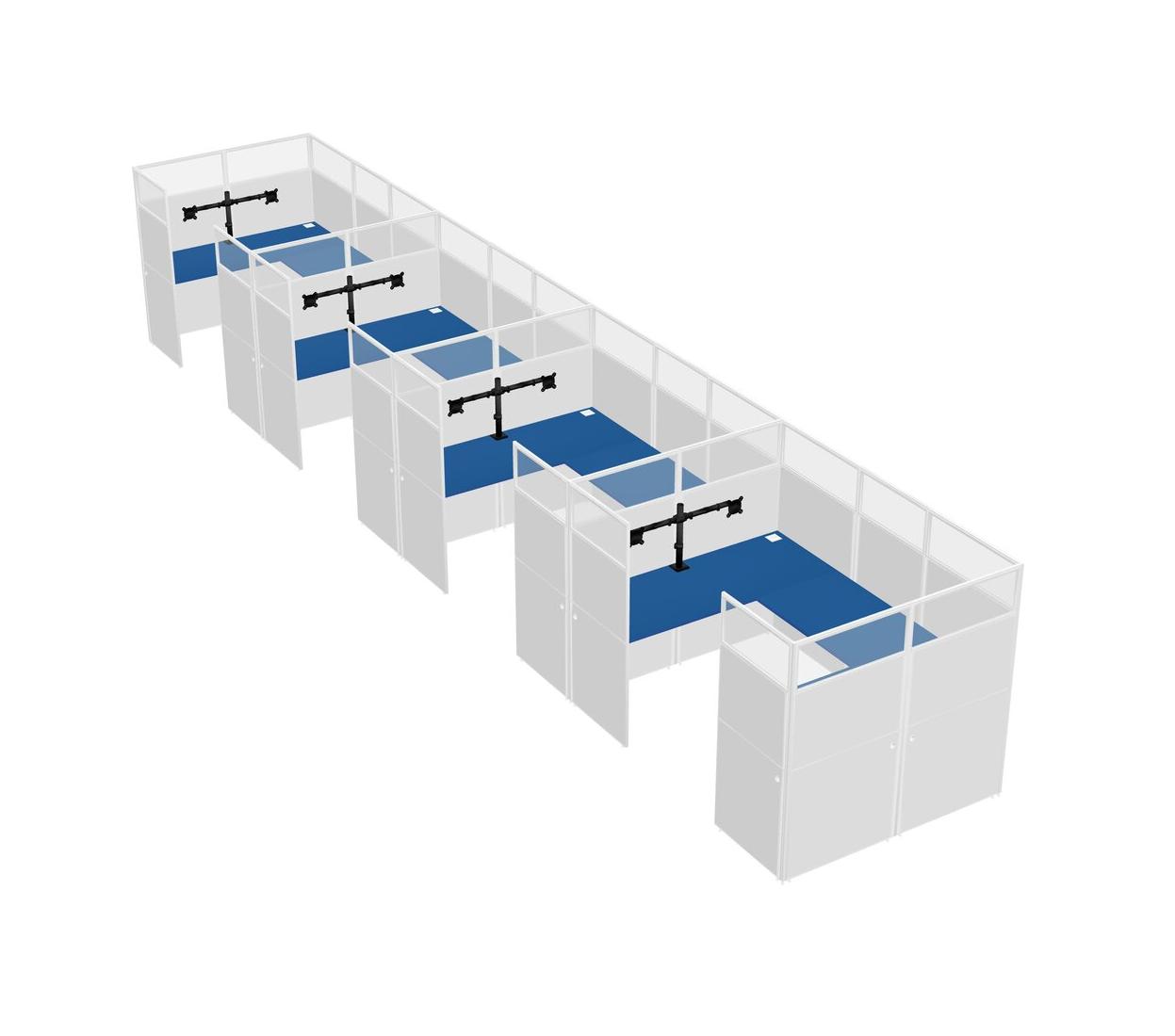 Prism Blue U-shaped Panel System For 4 Person + Monitor Arm (double Arms) For 4 User(s)