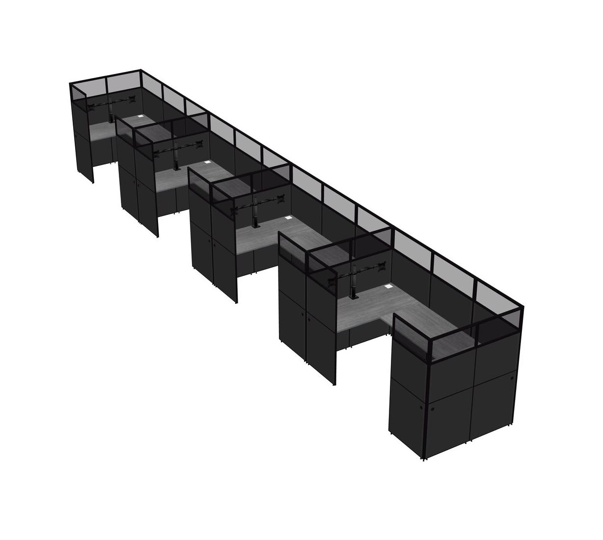 Grey U-shaped Panel System For 4 Person + Monitor Arm (double Arms) For 4 User(s)
