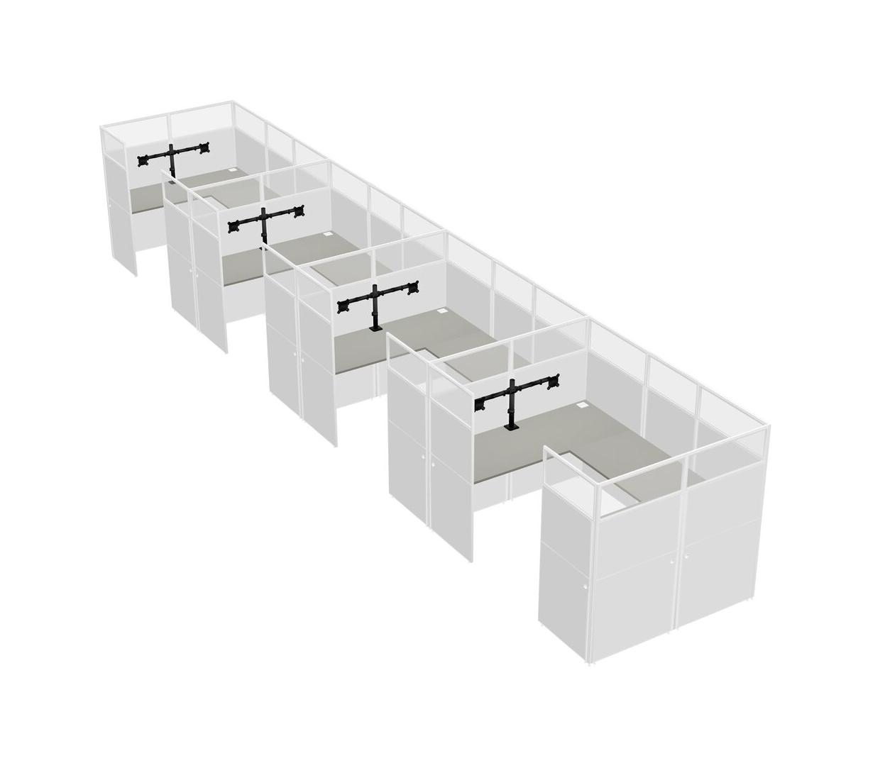 Grey Shadows U-shaped Panel System For 4 Person + Monitor Arm (double Arms) For 4 User(s)