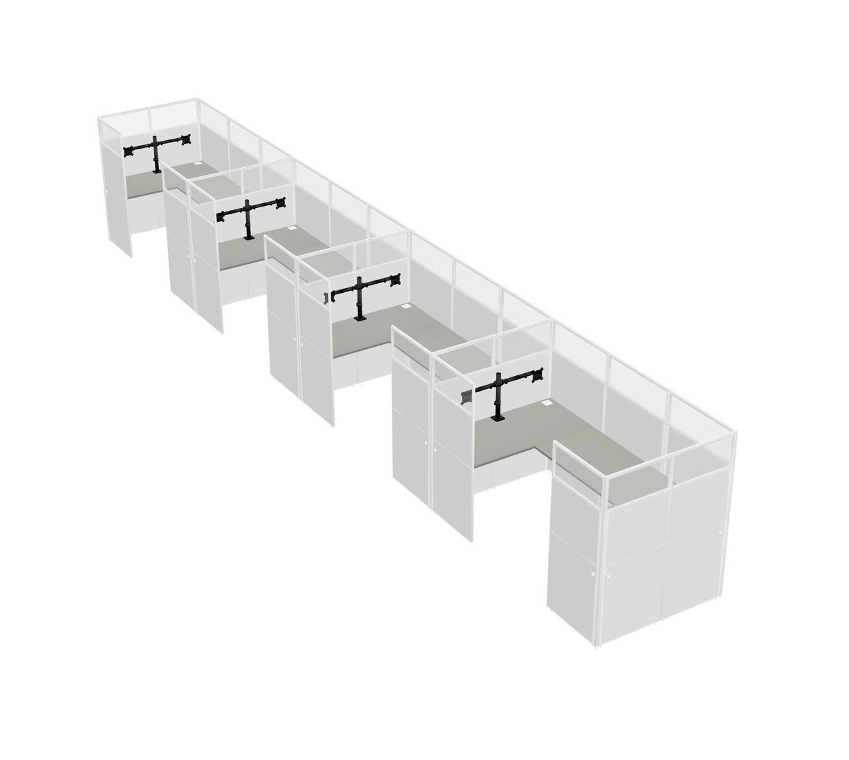 Grey Shadows U-shaped Panel System For 4 Person + Monitor Arm (double Arms) For 4 User(s)