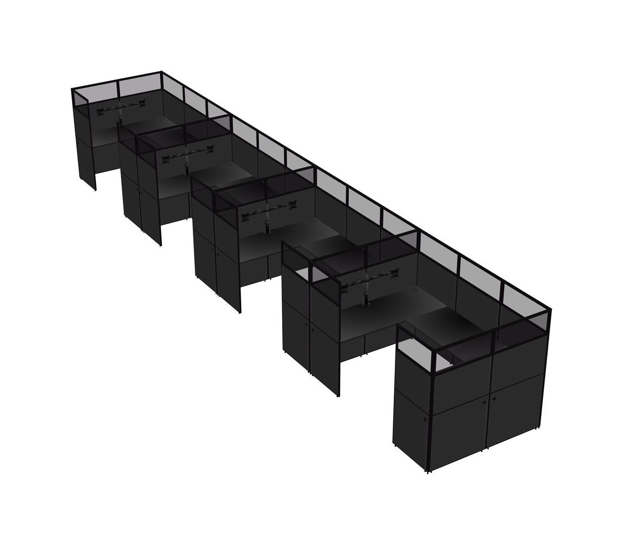 Black U-shaped Panel System For 4 Person + Monitor Arm (double Arms) For 4 User(s)