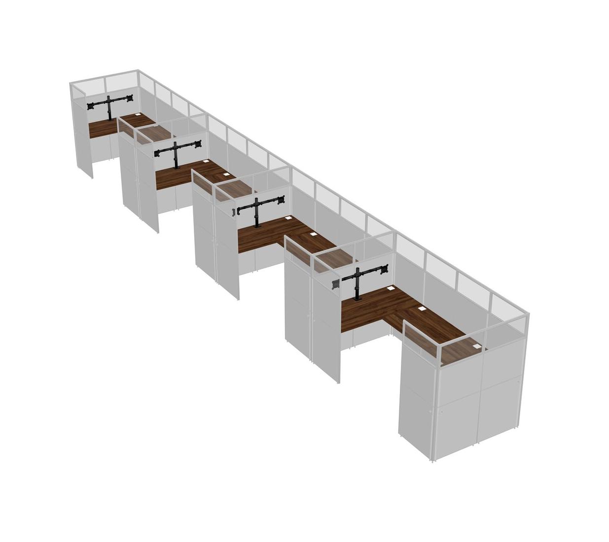 Columbia Walnut U-shaped Panel System For 4 Person + Monitor Arm (double Arms) For 4 User(s)