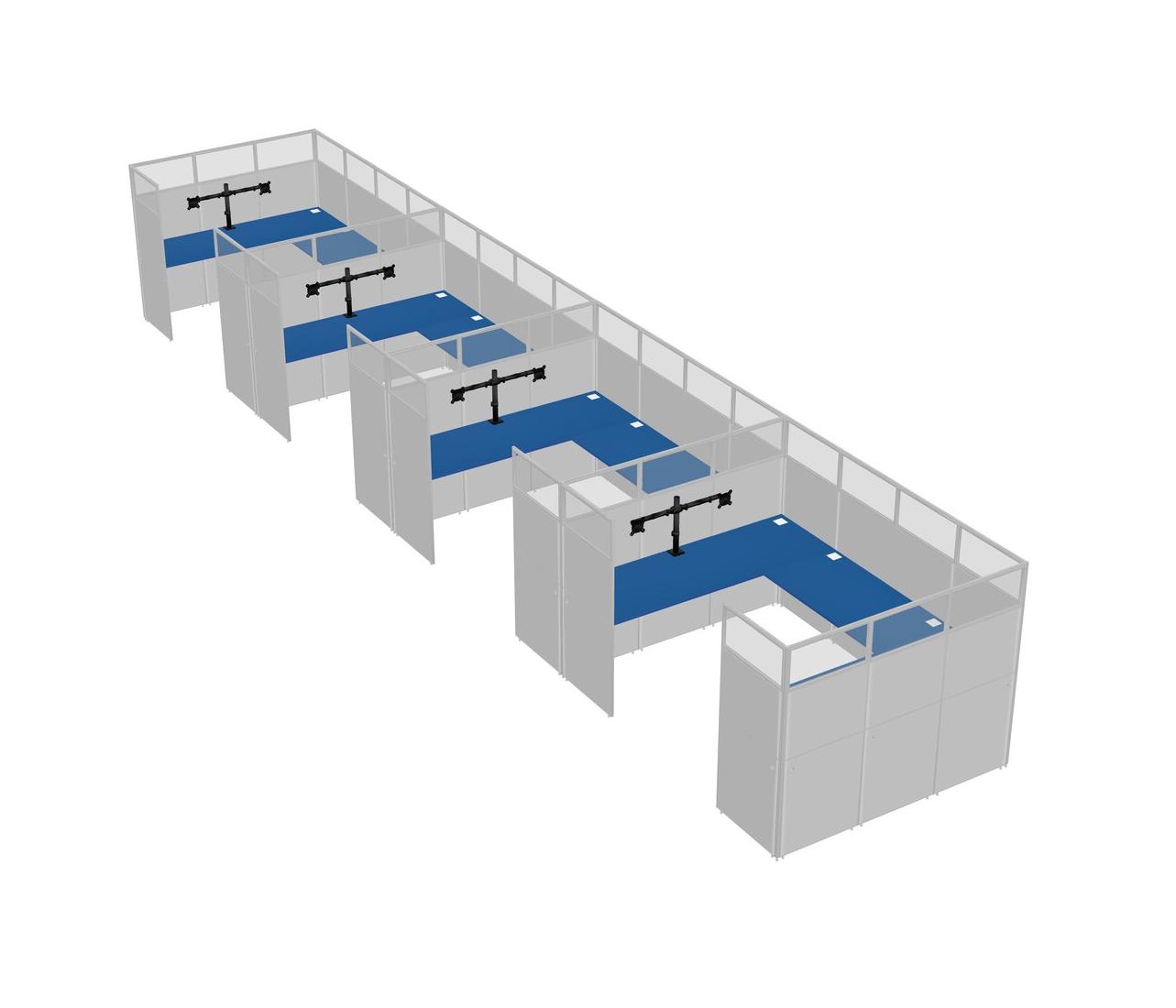 Prism Blue U-shaped Panel System For 4 Person + Monitor Arm (double Arms) For 4 User(s)