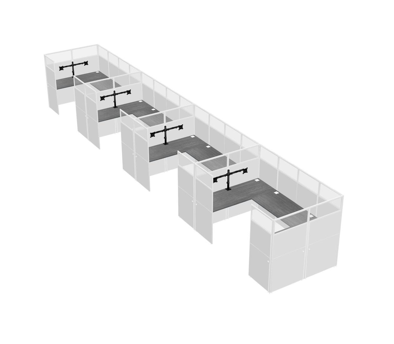 Grey U-shaped Panel System For 4 Person + Monitor Arm (double Arms) For 4 User(s)