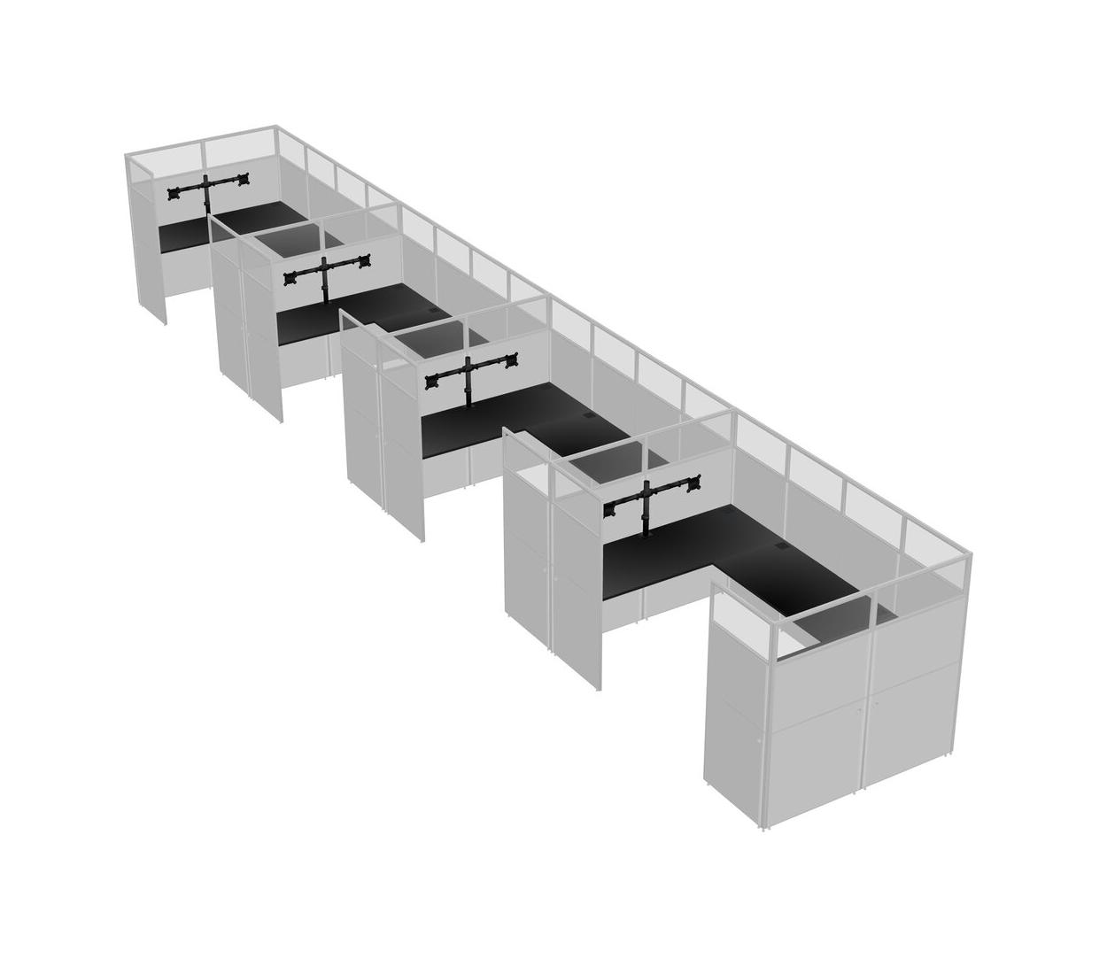 Black U-shaped Panel System For 4 Person + Monitor Arm (double Arms) For 4 User(s)