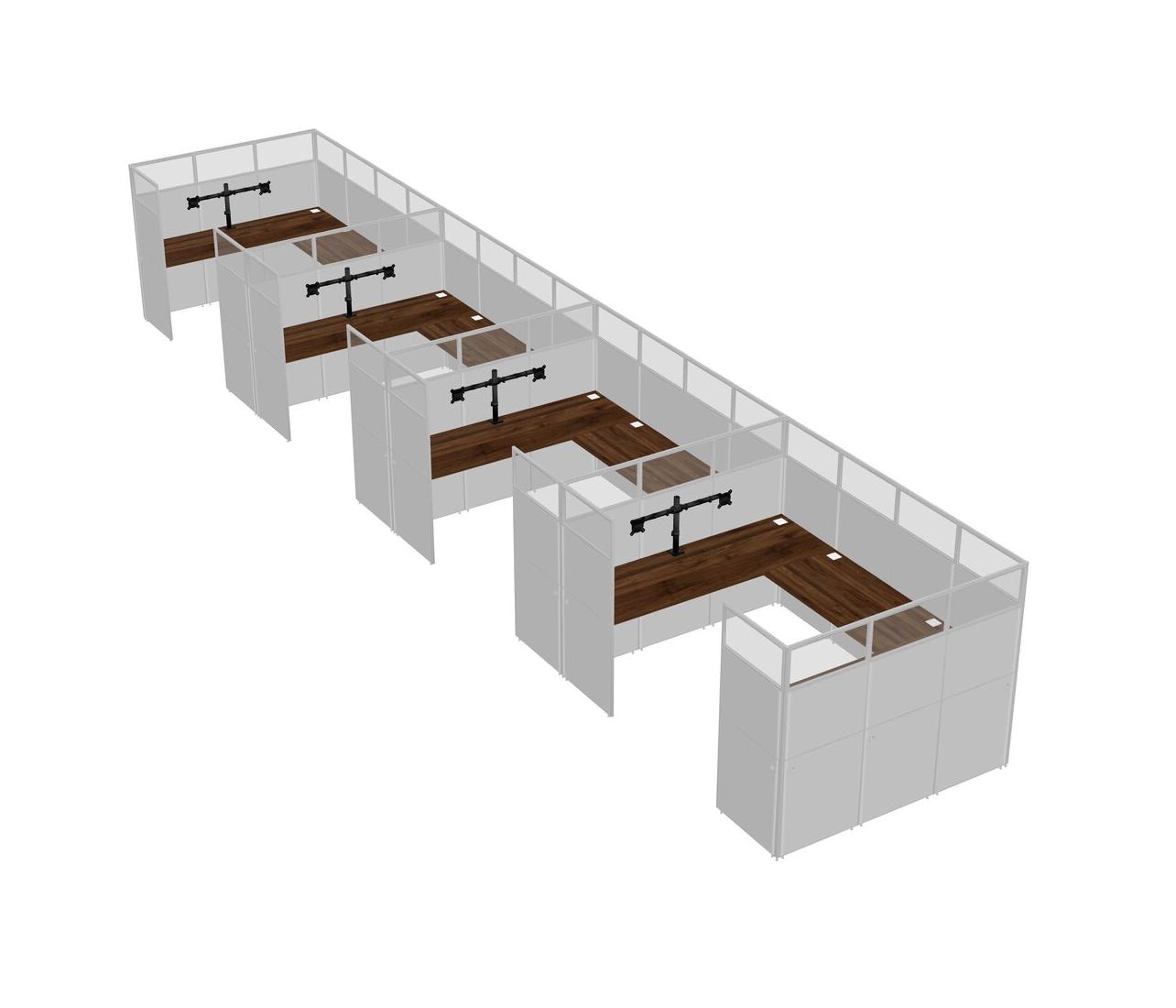 Columbia Walnut U-shaped Panel System For 4 Person + Monitor Arm (double Arms) For 4 User(s)