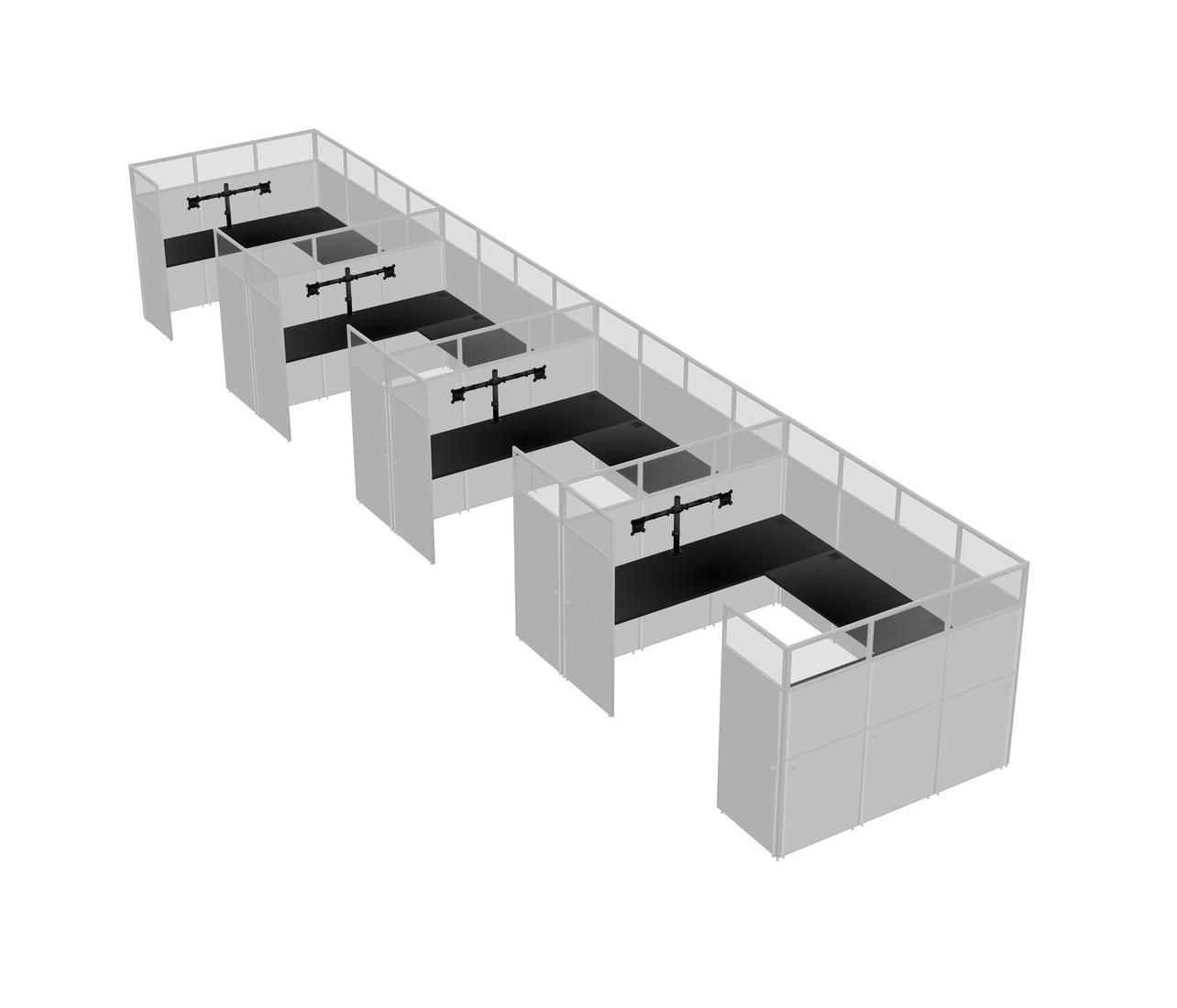 Black U-shaped Panel System For 4 Person + Monitor Arm (double Arms) For 4 User(s)