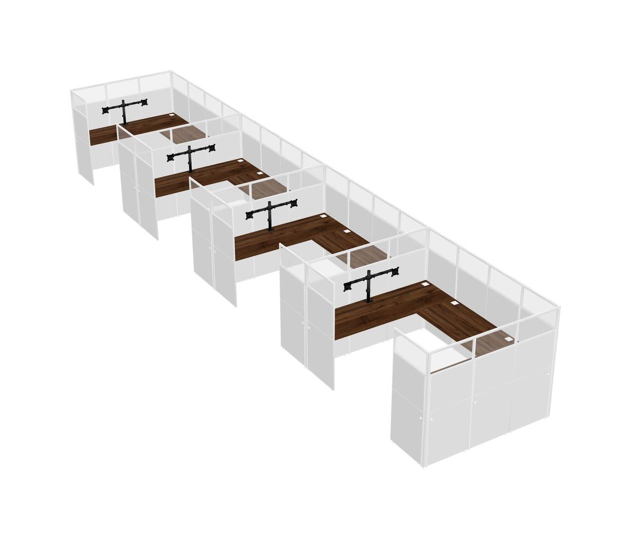 Columbia Walnut U-shaped Panel System For 4 Person + Monitor Arm (double Arms) For 4 User(s)