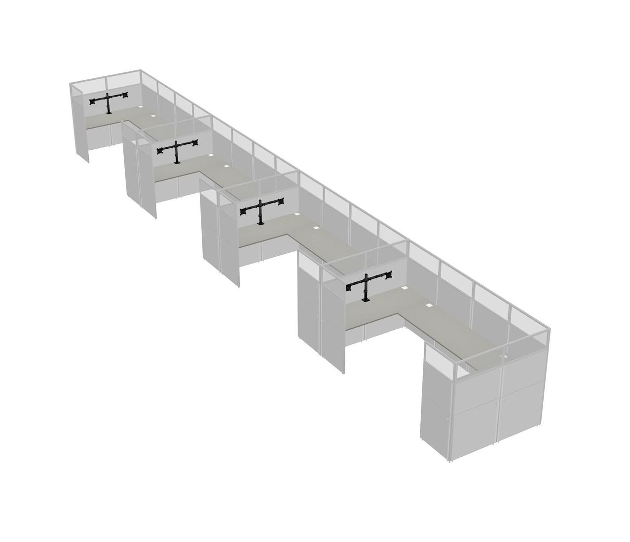 Grey Shadows U-shaped Panel System For 4 Person + Monitor Arm (double Arms) For 4 User(s)