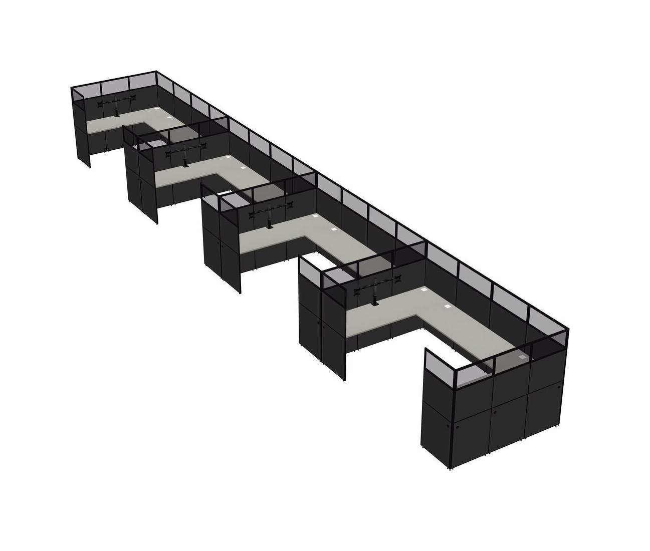 Grey Shadows U-shaped Panel System For 4 Person + Monitor Arm (double Arms) For 4 User(s)
