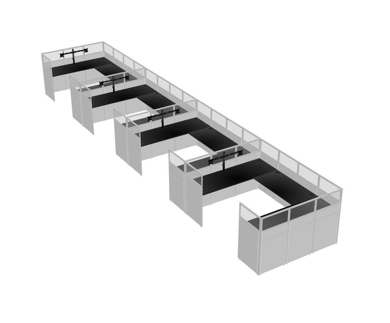 Black U-shaped Panel System For 4 Person + Monitor Arm (double Arms) For 4 User(s)