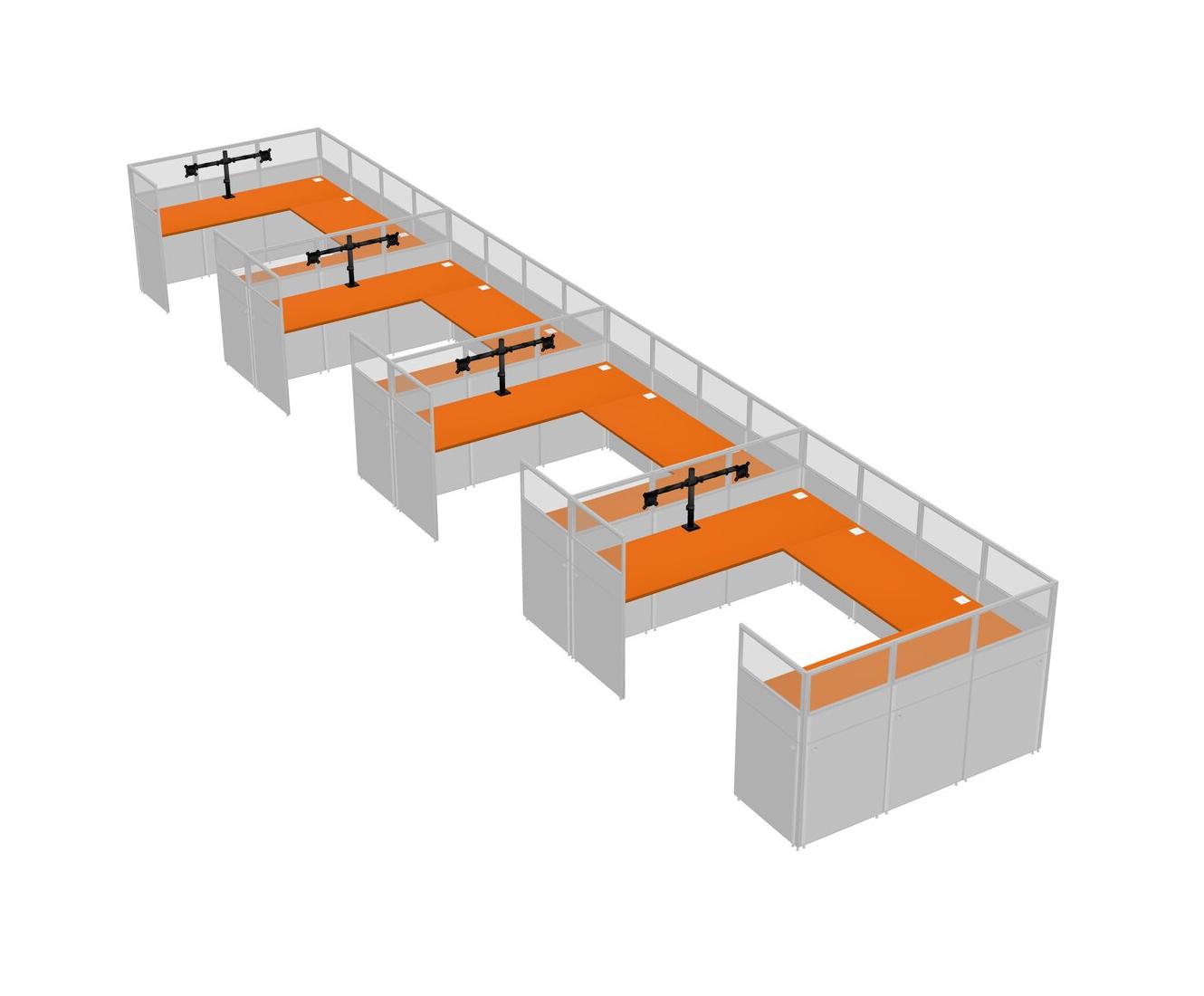 Orange U-shaped Panel System For 4 Person + Monitor Arm (double Arms) For 4 User(s)