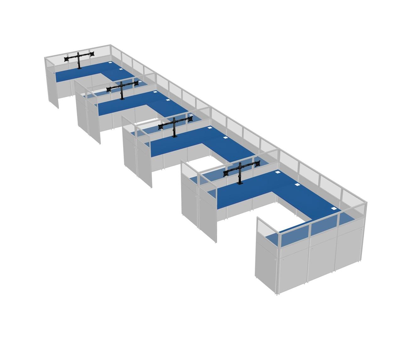 Prism Blue U-shaped Panel System For 4 Person + Monitor Arm (double Arms) For 4 User(s)