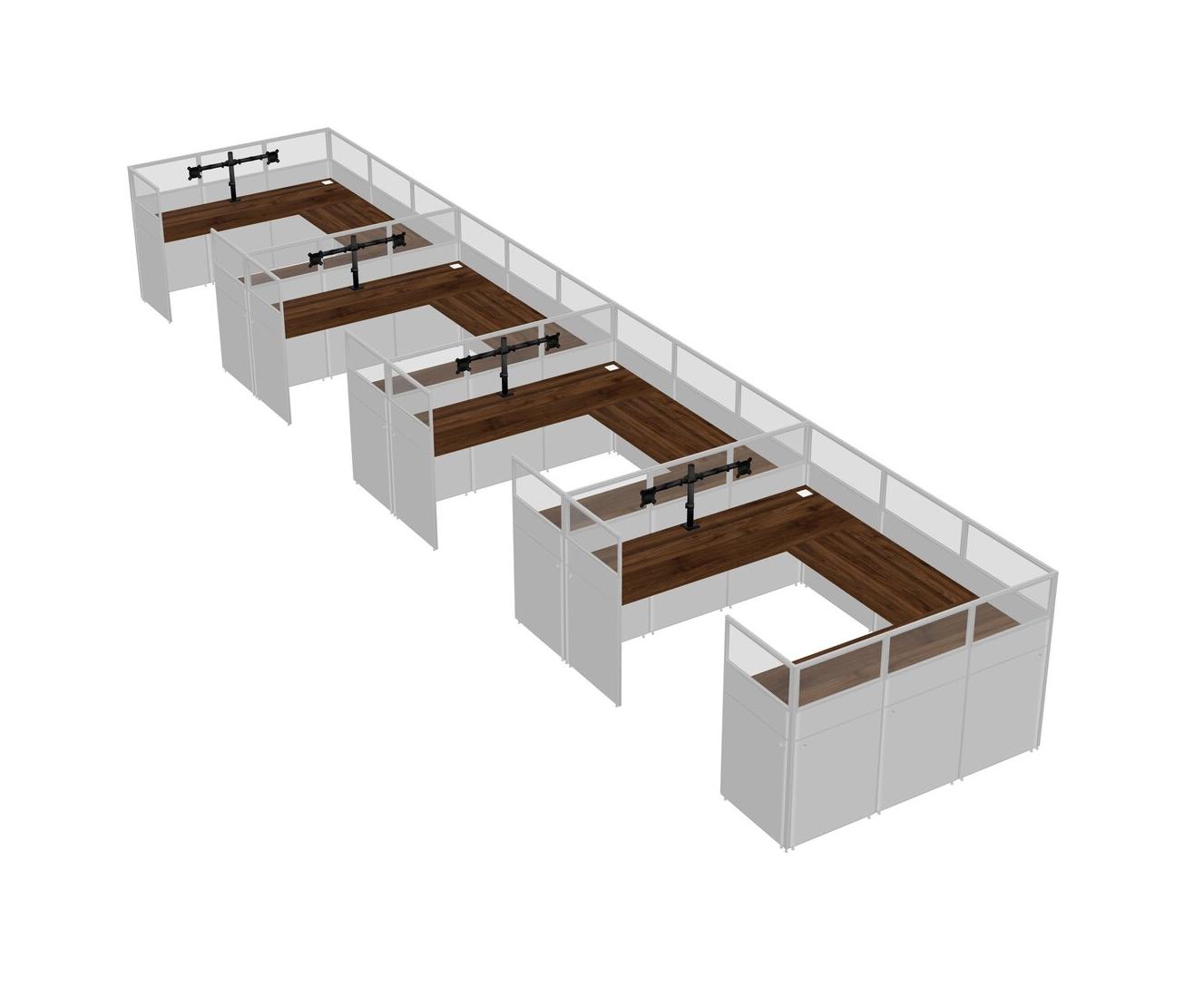 Columbia Walnut U-shaped Panel System For 4 Person + Monitor Arm (double Arms) For 4 User(s)
