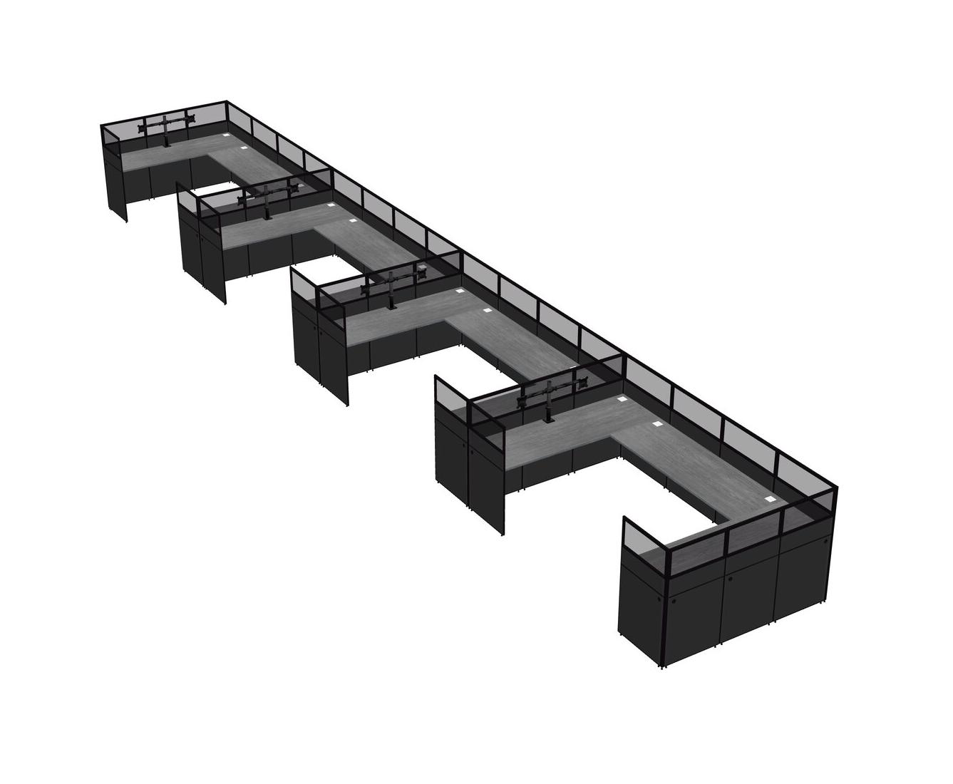 Grey U-shaped Panel System For 4 Person + Monitor Arm (double Arms) For 4 User(s)