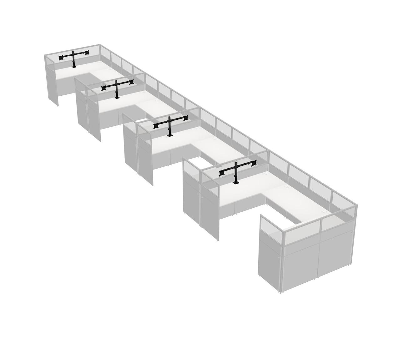 White U-shaped Panel System For 4 Person + Monitor Arm (double Arms) For 4 User(s)